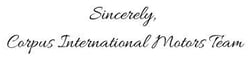 Thank you for choosing Corpus International Motors! We look forward to serving you.